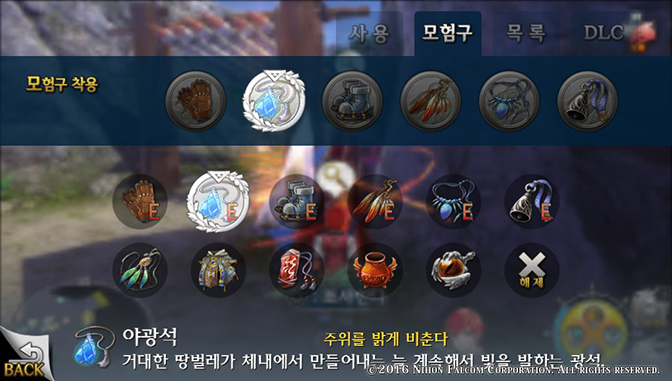 야광석: 몇몇 어두운 던전에서 주변을 비춰주는 도구로 2장 중반 침식 계곡에서 보스 론브리우스를 쓰러뜨리고 얻습니다.