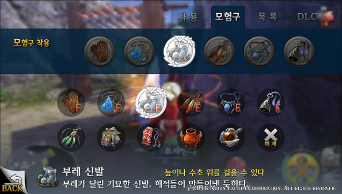 부레 신발: 늪지대와 물 위를 걸을 수 있게 해주는 도구로 2장 중반 쉴람 밀림 지대에서 보스 마가만드라를 쓰러뜨리고 얻습니다.