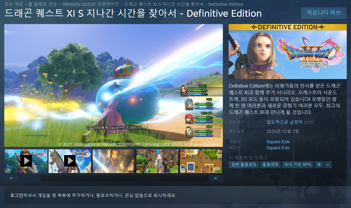게임제목: Dragon Quest XI S, 드래곤 퀘스트 XI S 지나간 시간을 찾아서 - Definitive Edition