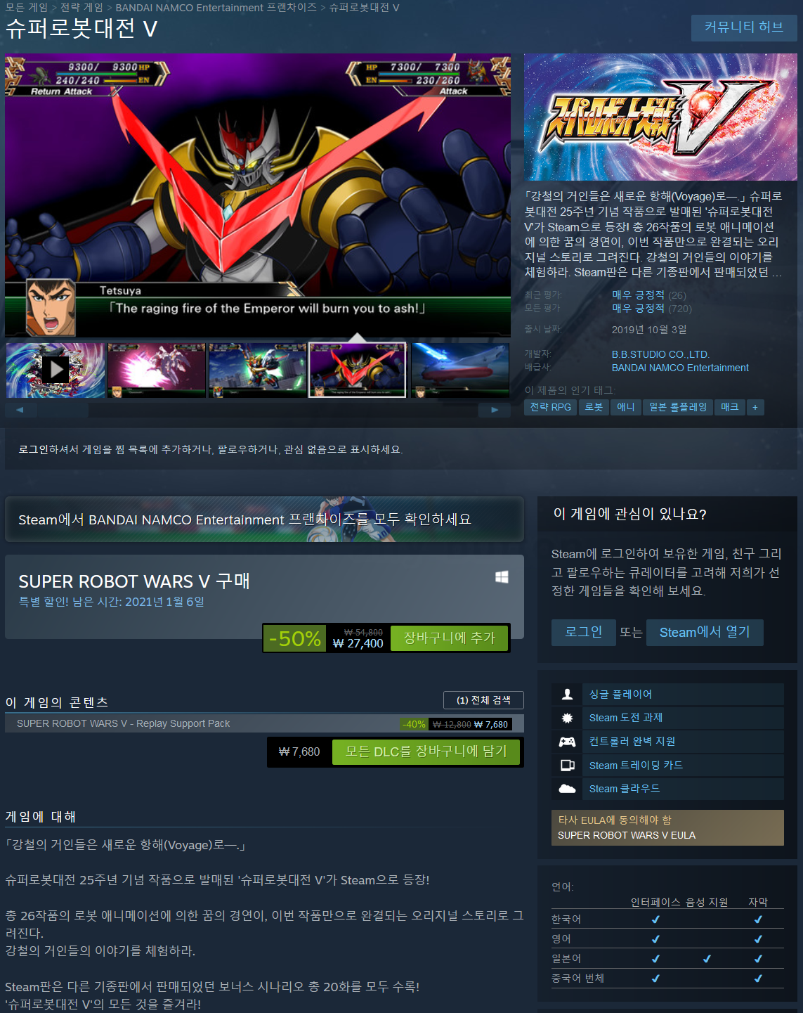 슈퍼로봇대전 25주년 기념 작품으로 발매된 '슈퍼로봇대전 V'가 Steam으로 등장!