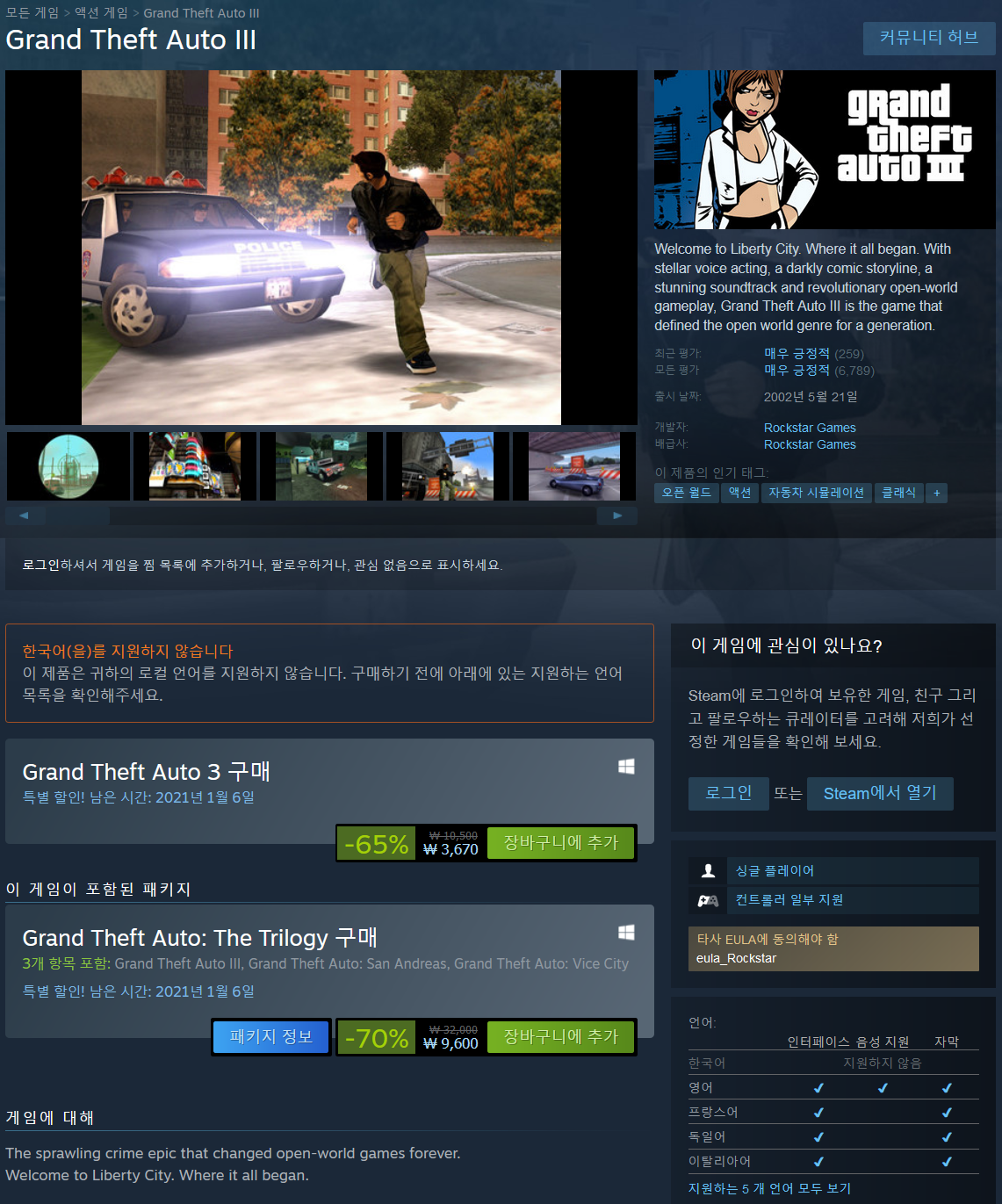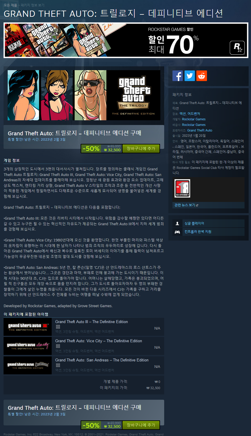 - https://store.steampowered.com/sub/817628/ //GTA 트릴로지 완전판 에디션