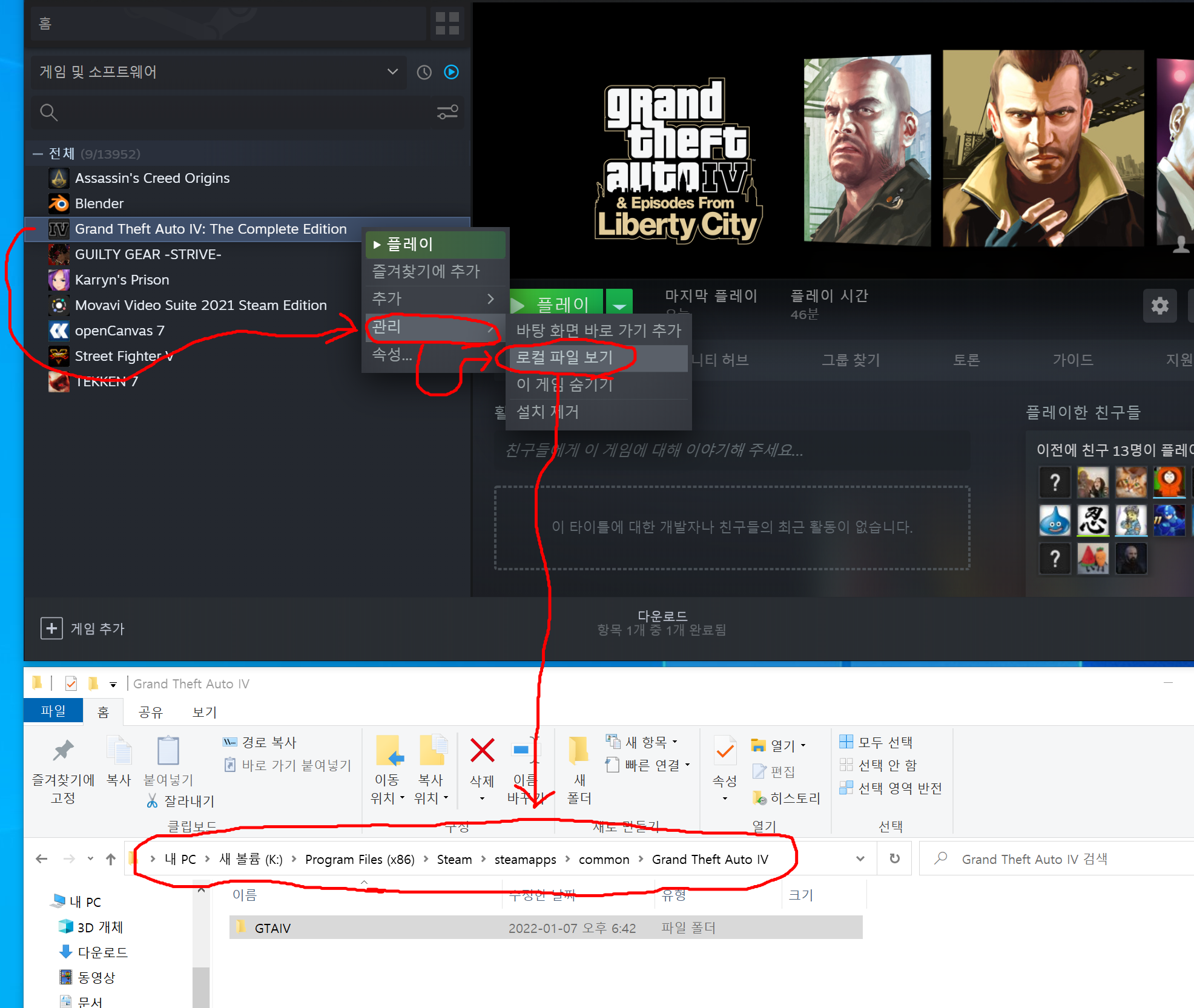 4. GTA4 실행할때 스팀 라이브러리에서 실행하시면 됩니다.