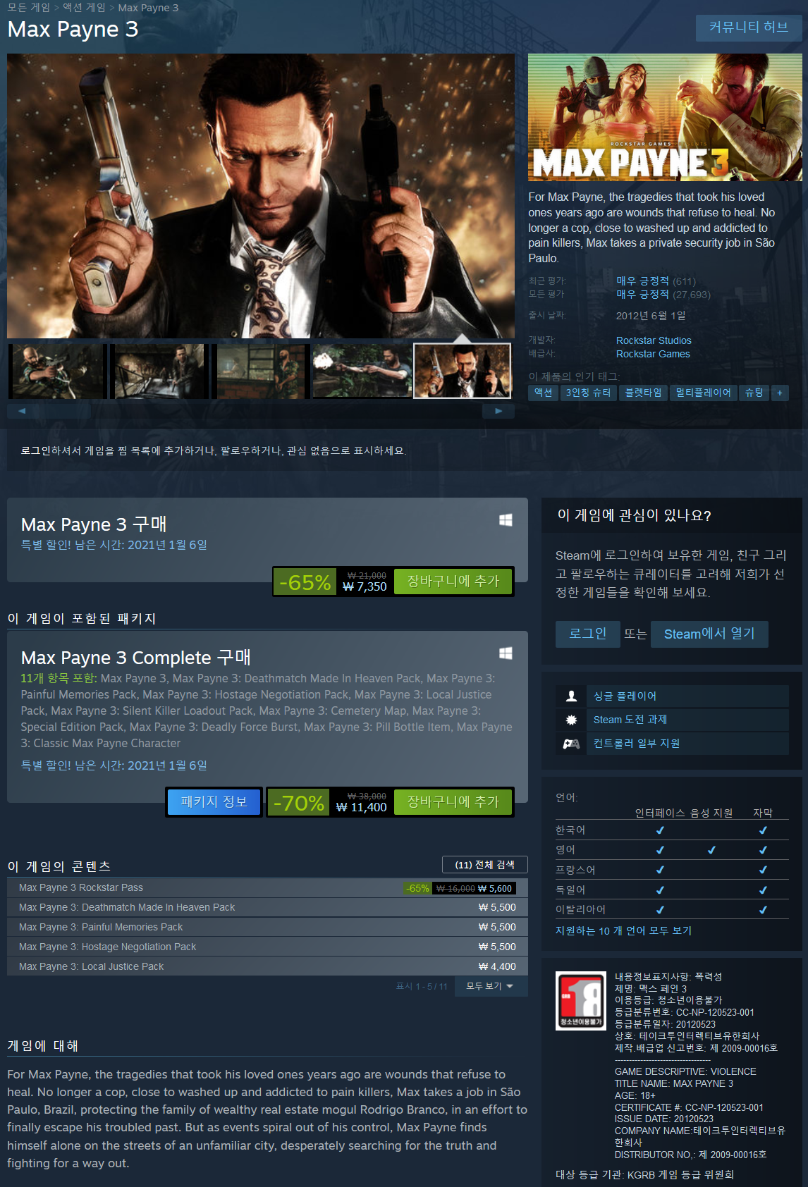 - Max Payne 3 65% (7,350원 최저가)