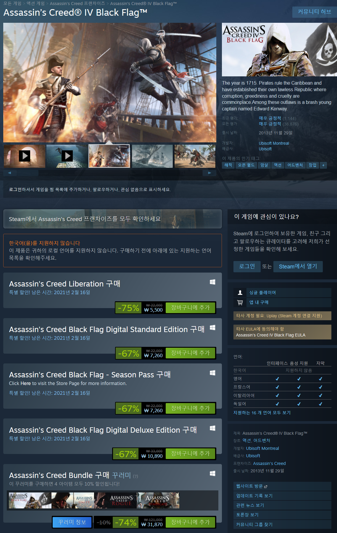 블랙 플래그를 접하기 전까진 에지오 트릴로지를 따라올 어크 시리즈는 없었지만, 이제는 블랙 플래그가 가장 재밌다고 당당히 말할 수 있습니다.