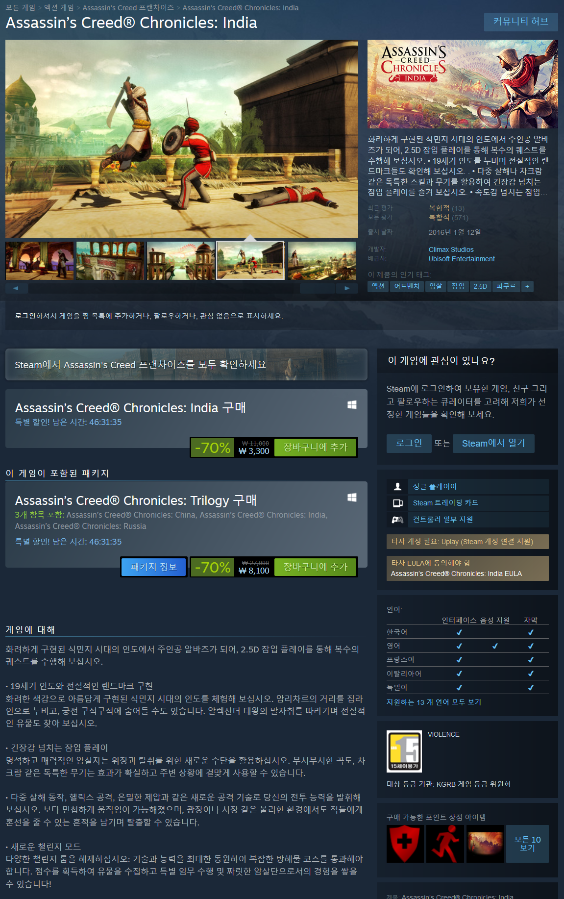 어쌔신 크리드 1편부터 가장 최근작인 신디케이트까지 전부 플레이 했습니다.