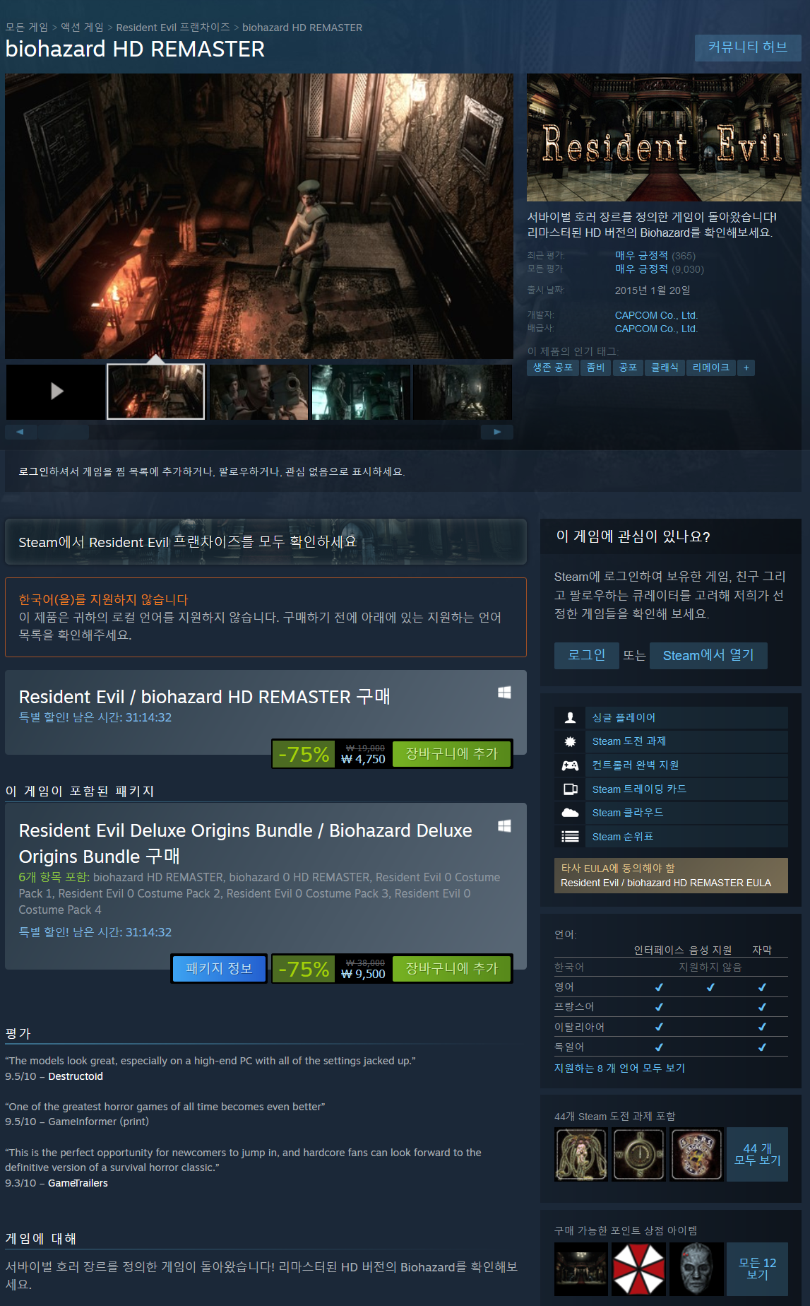 서바이벌 호러 장르를 정의한 게임이 돌아왔습니다! 리마스터된 HD 버전의 Biohazard를 확인해보세요.