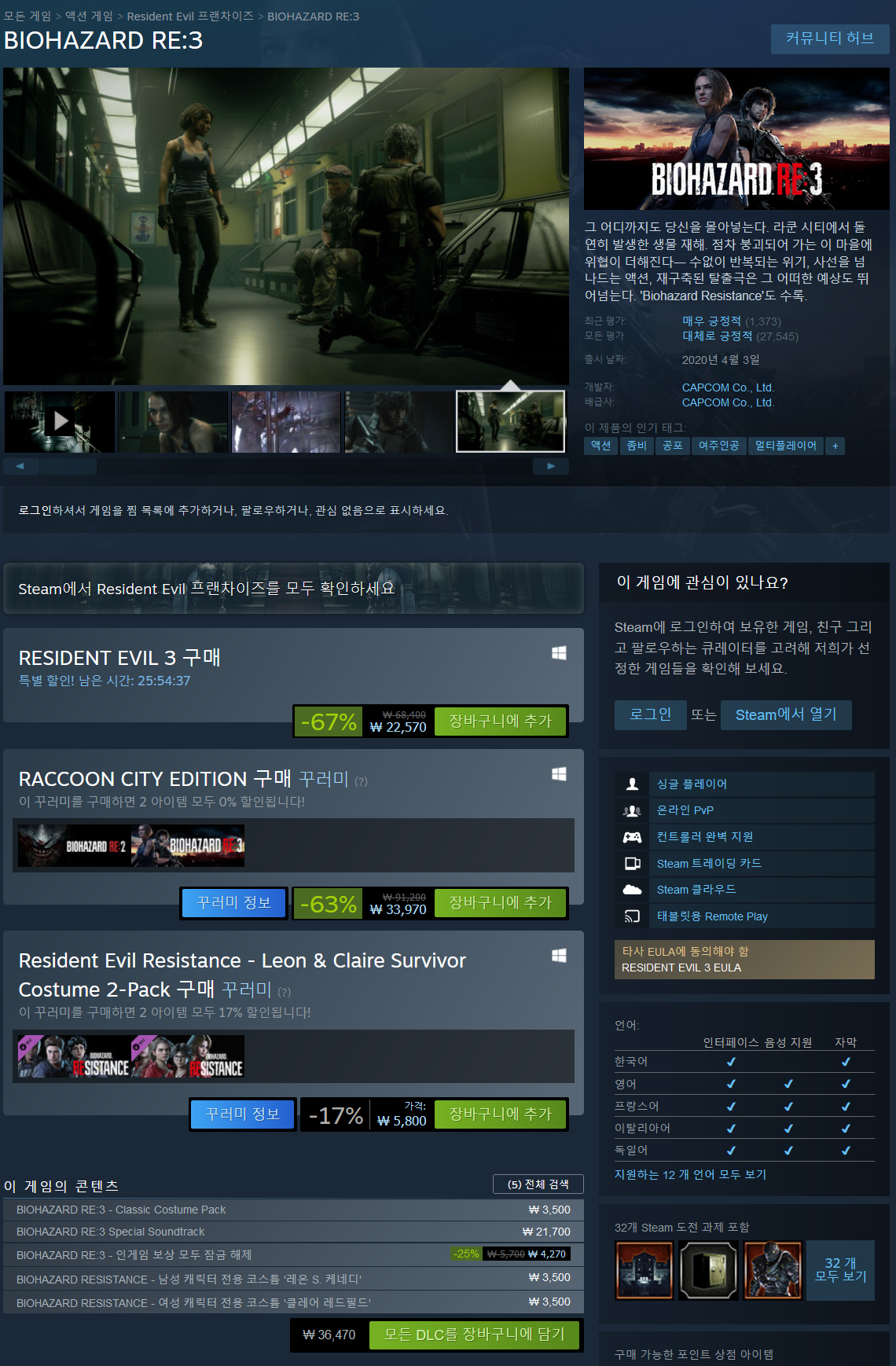 - RESIDENT EVIL 3 67%(22,570원 최저가)