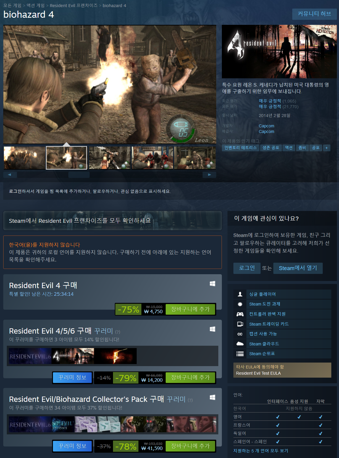 - Resident Evil 4 75%(4,750원 최저가)