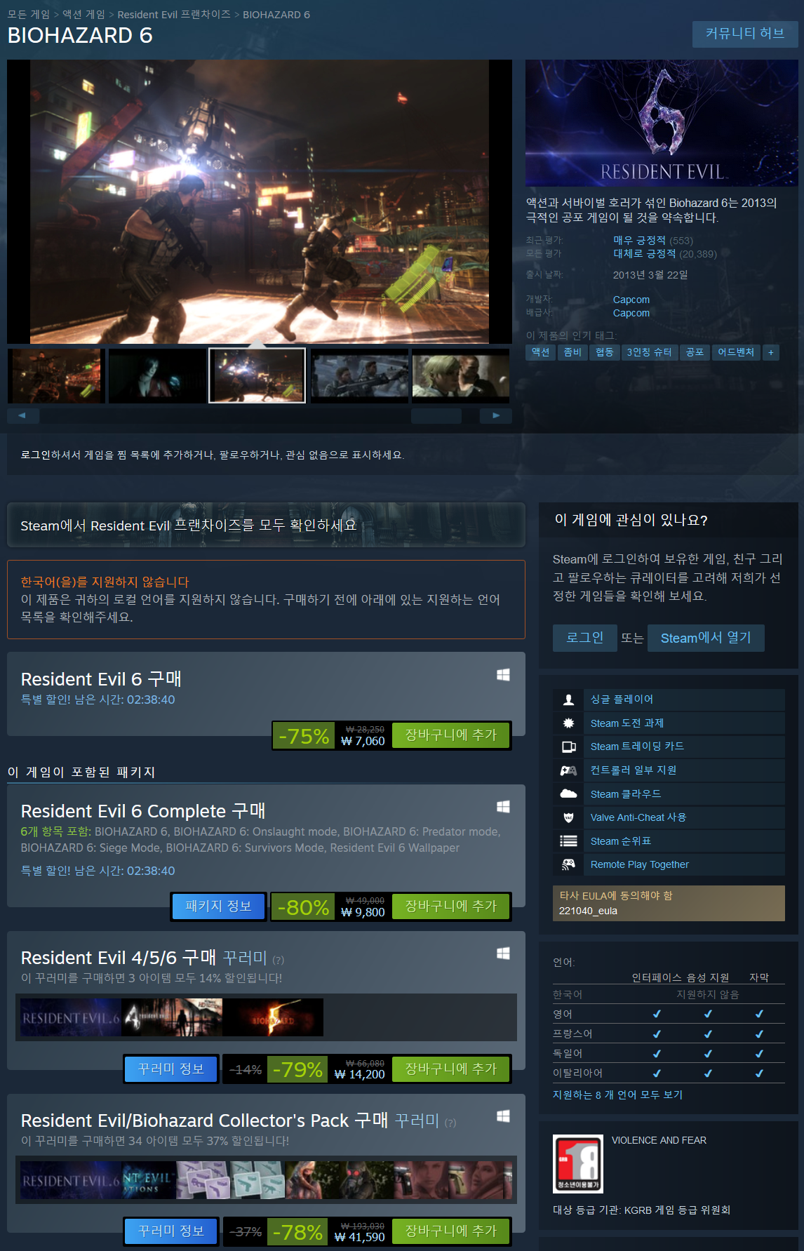 - Resident Evil 6 Complete 80%(9,800원 최저가)