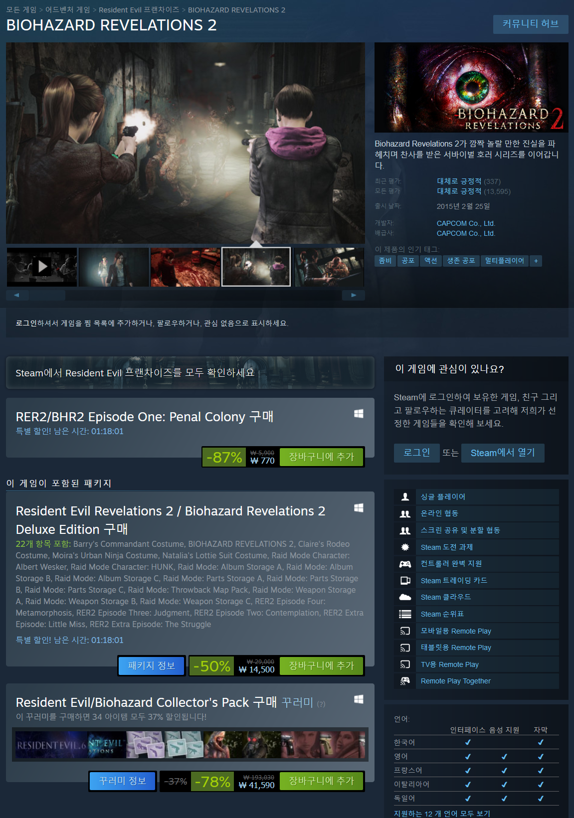 - 서바이벌 호러의 귀환 – Biohazard Revelations 모험담에 새로운 이야기가 현재와 다음 세대의 게이밍 콘솔에 주간 에피소드 다운로드, 디지털 Complete Seaon, 소매점 디스크 형태로 등장합니다.