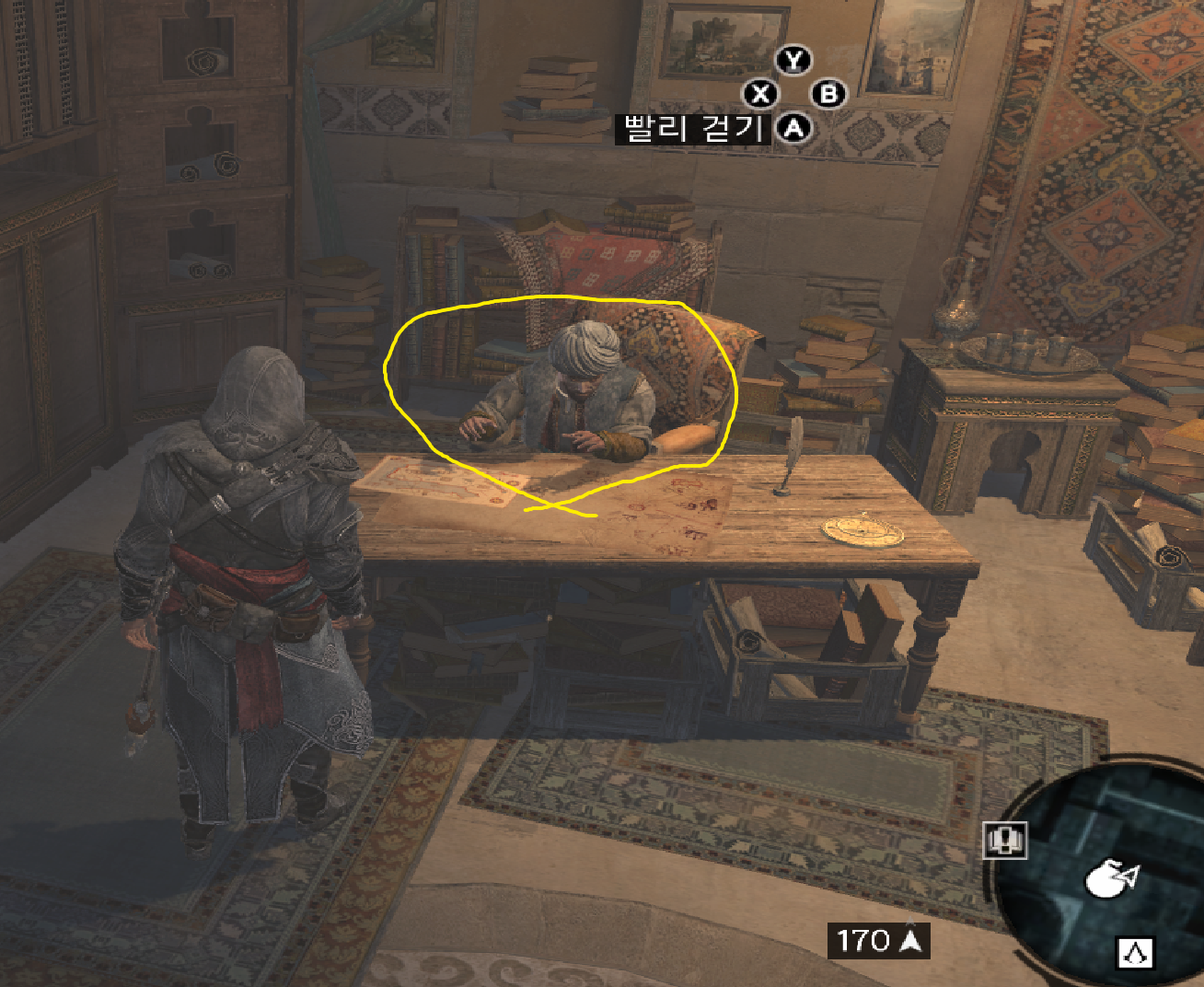 - 암살자 용병을 구하면서 비둘기장(지도-하얀폭탄아이콘)에서 암살자미션을 각각 암살자용병들에게 시키면서