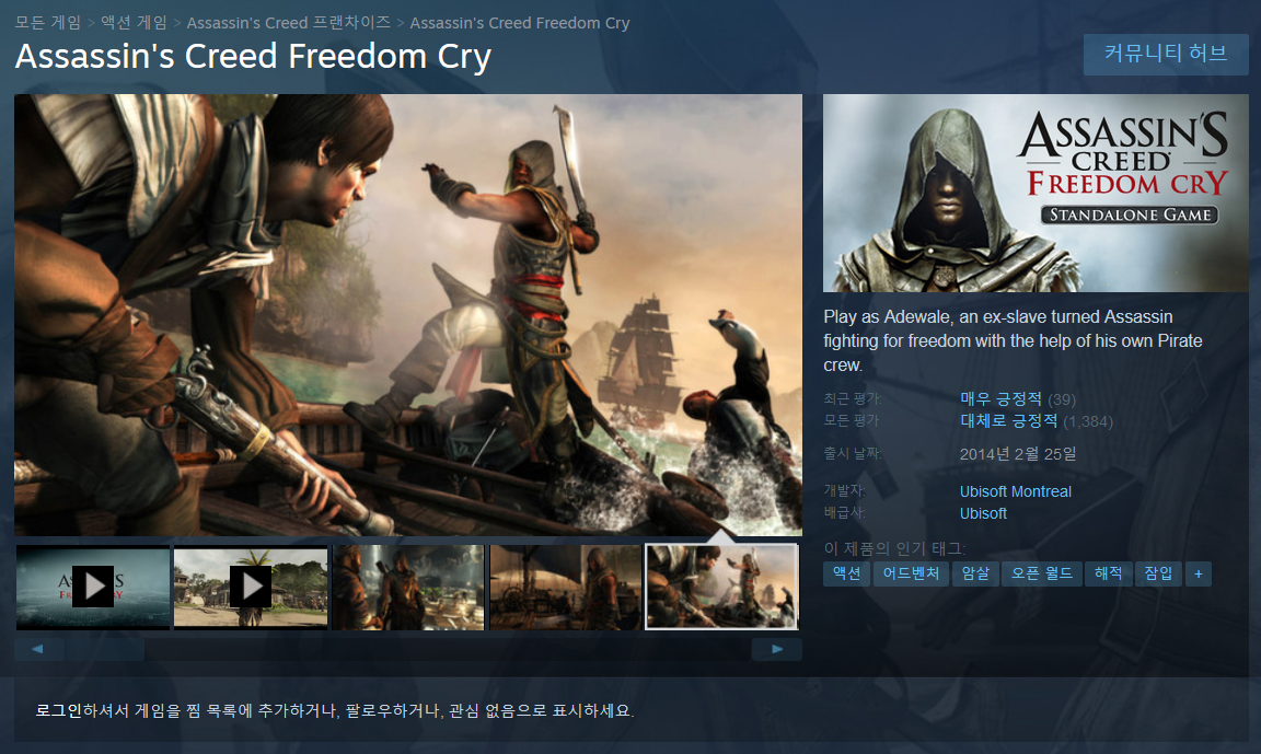 게임제목: 어쌔신크리드 Freedom Cry, Assassin's Creed Freedom Cry
