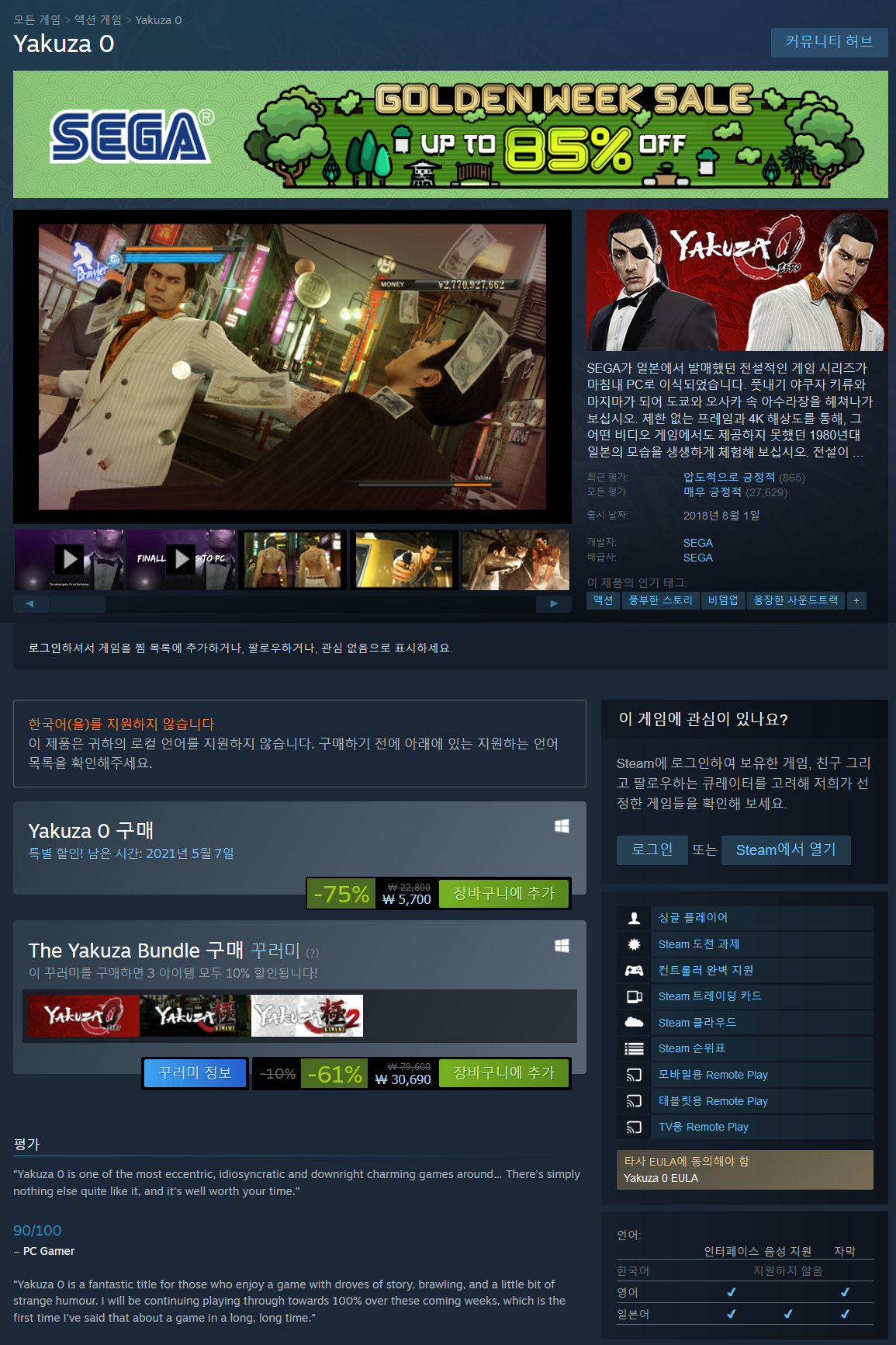 - The Yakuza Bundle 61% [제로, 극, 극2] (30,690원 최저가)