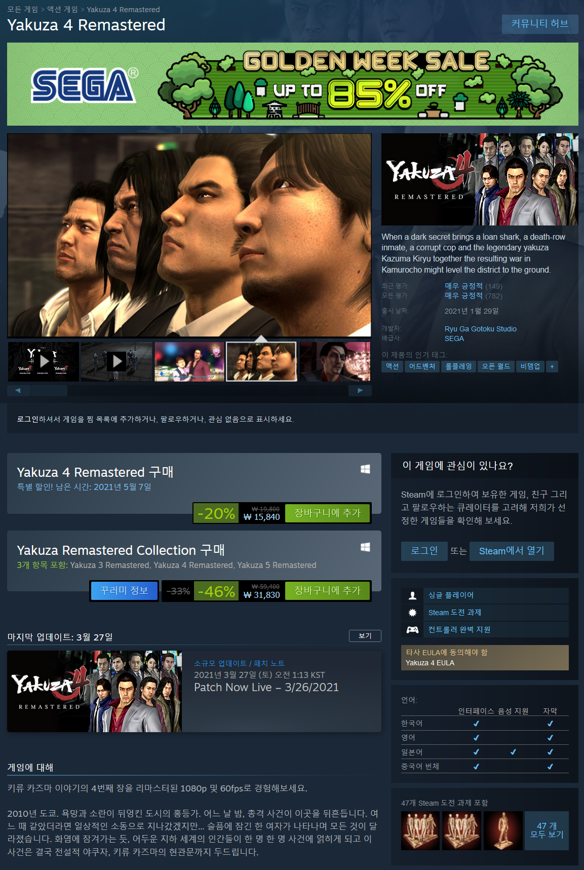 - Yakuza 4 Remastered 20% (15,840원 최저가)