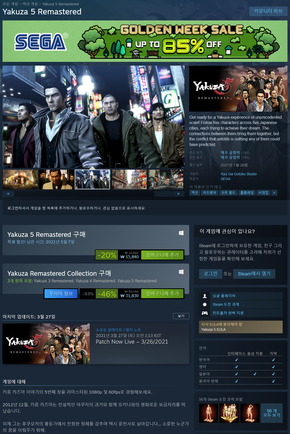 - Yakuza Remastered Collection 46% [3, 4, 5] (31,830원 최저가)
