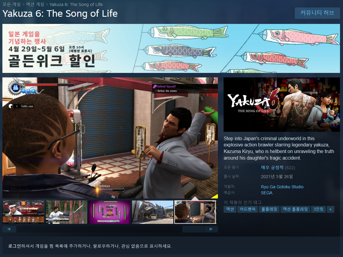 | 용과 같이 0(제로), Yakuza 0 한글패치 관련 (0) | 2021.05.04 |