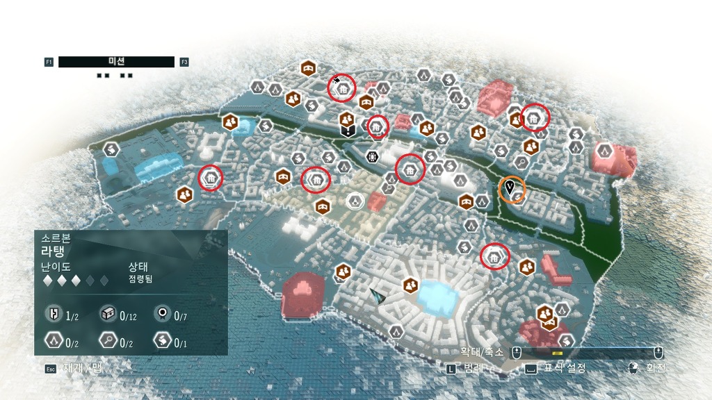 아직 고치지 않은 사교클럽은 붉은색 집 아이콘으로 표시됩니다.