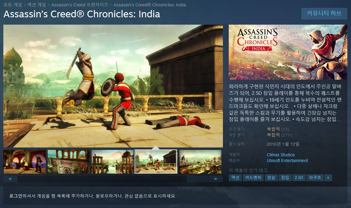 게임제목: 어쌔신크리드 크로니클즈 인디아, Assassin's Creed Chronicles: India