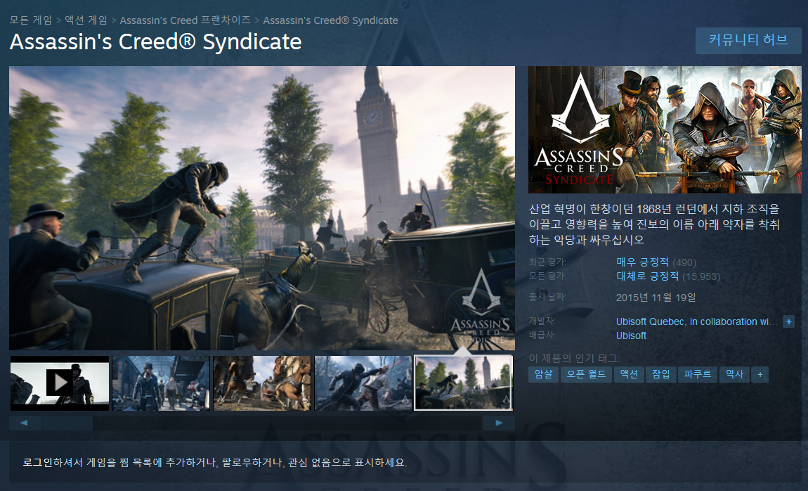 게임제목: 어쌔신크리드 신디케이트, Assassin's Creed Syndicate