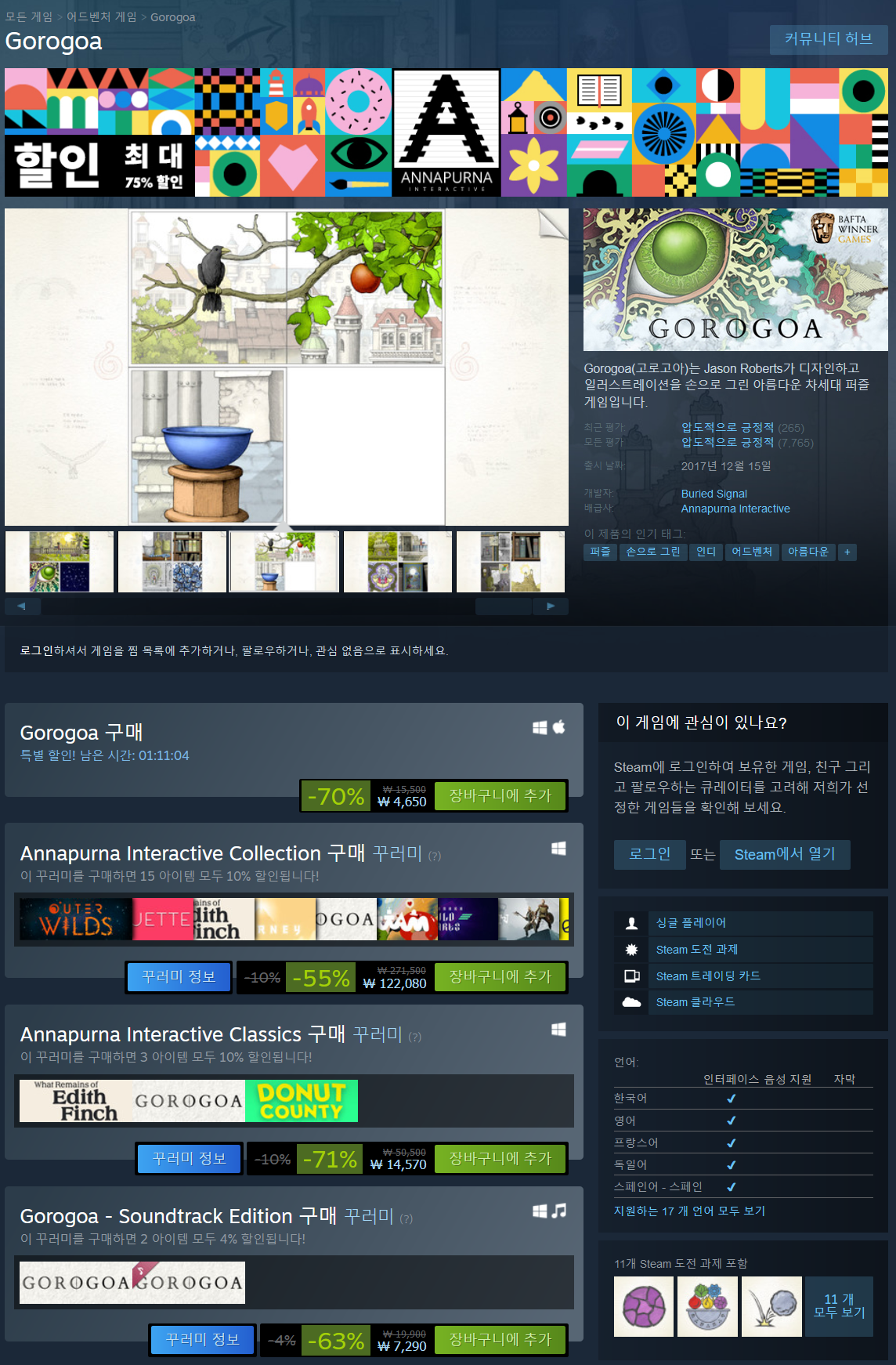 - Gorogoa - Soundtrack Edition 63% (7,290원 최저가)