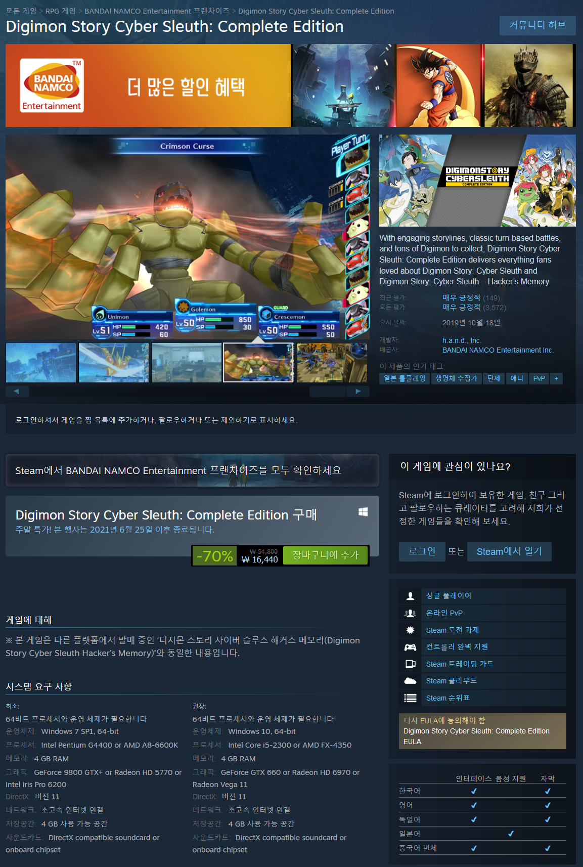 매력적인 스토리라인, 고전적인 턴제 전투, 수집할 수 있는 수많은 디지몬을 갖춘 Digimon Story Cyber Sleuth: Complete Edition은 Digimon Story: Cyber Sleuth 및 Digimon Story: Cyber Sleuth – Hacker's Memory에 대해 팬들이 사랑하는 모든 것을 제공합니다.