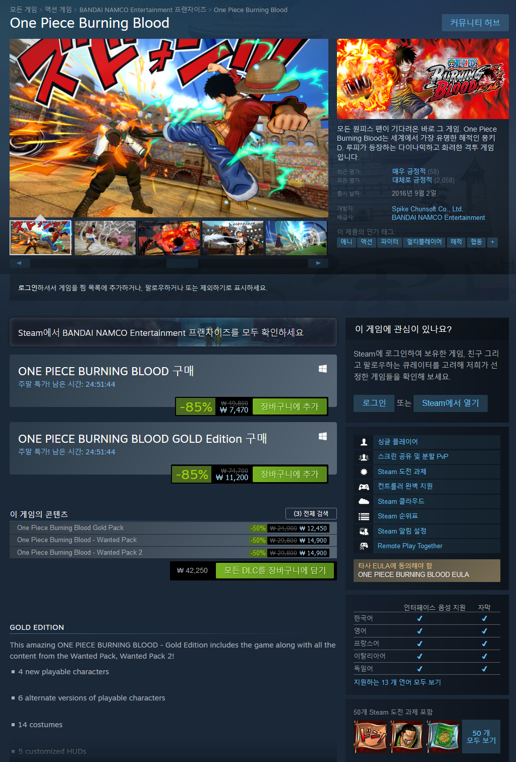 - Gold Edition 85% (11,200원 최저가) [본편+DLC]