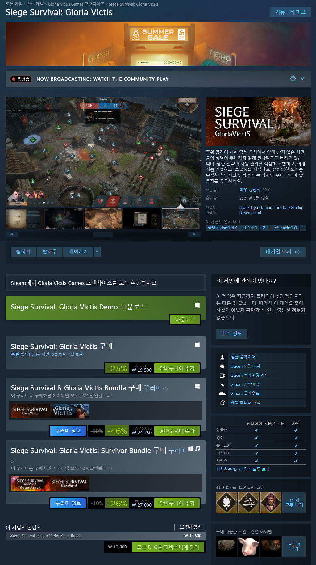 원래 This war of mine 의 중세판이다! 라는 말을 듣고 흥미를 가진채 게임을 시작했습니다. 3D 디오워랑 비슷은 하지만 내가 잘사는것이 아닌 나는 전쟁의 서포터의 역활이었죠. 템 파밍의 스릴은 좀 있었지만 약간란듯 안모자란듯한 AI 와 조금 엉망인 길찾기 기능 자잘한 버그들이 조금씩 있습니다. 초반 10일 까지가 제일 재밋지만 이후 점차 몰입도가 떨어집니다. 물론 몰입도가 떨어질뿐 난이도는 그대로란점이 좀 그렇네요. 후반부의 재미를 보충해줄 시나리오 설정이 필요할듯 하고, 사막 시나리오는 맵에 있는 자원들을 전부 채집이 불가능합니다. 모래바람이라는 설정으로 질병에 취약해 처음 해보면 대부분 인원들이 앓아 누워 아무것도 못하는 상황이죠. 그리고 막으라고 해둔 방어병력들이 아니라 버티라고 해둔 것이란점이 보이니 강한 방어와 빠른 탈출 루트를 잘 공략해보시기 바랍니다.