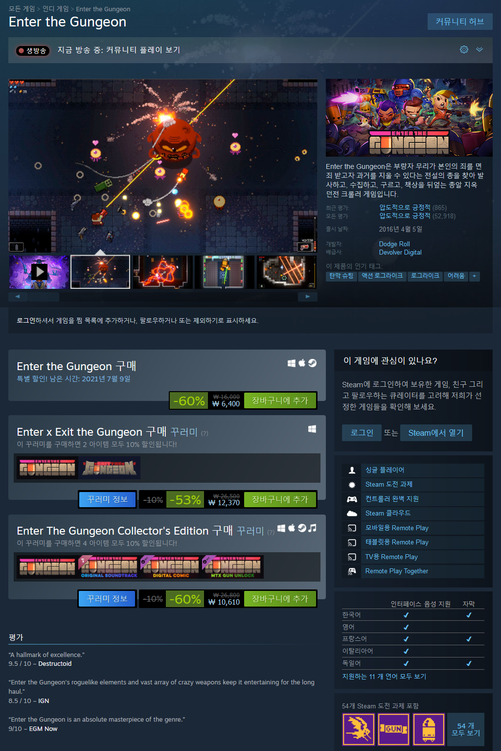 - Enter The Gungeon Collector's Edition 60% (10,610원 최저가)
