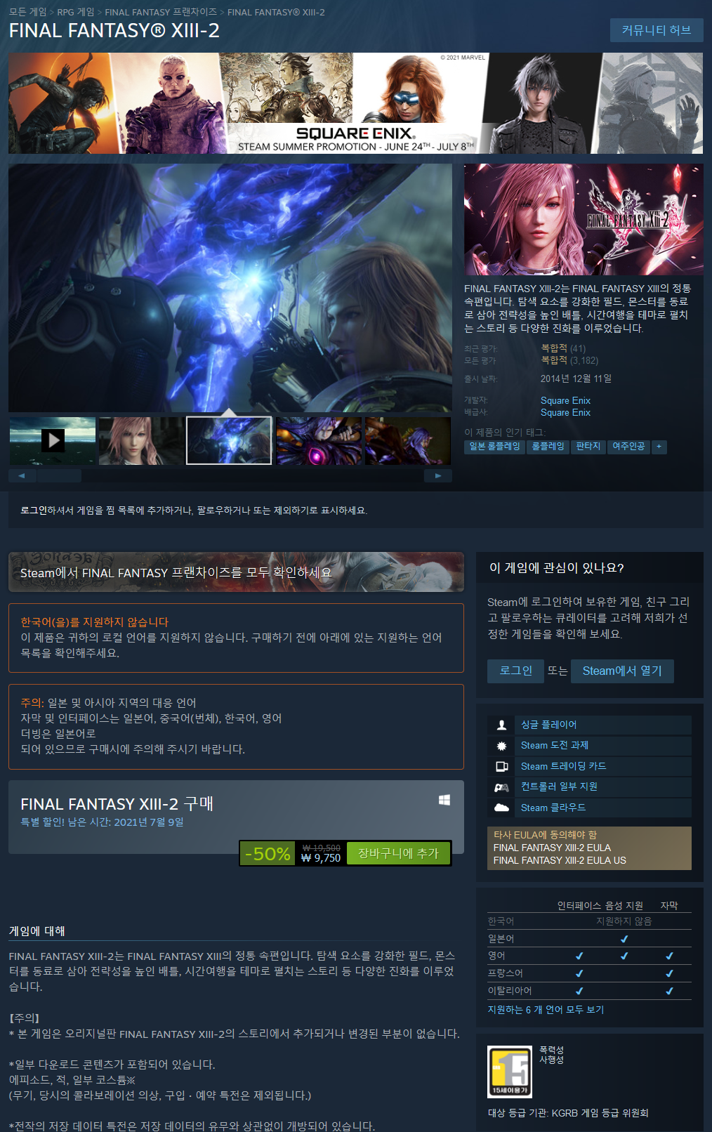* 본 게임은 오리지널판 FINAL FANTASY XIII-2의 스토리에서 추가되거나 변경된 부분이 없습니다.