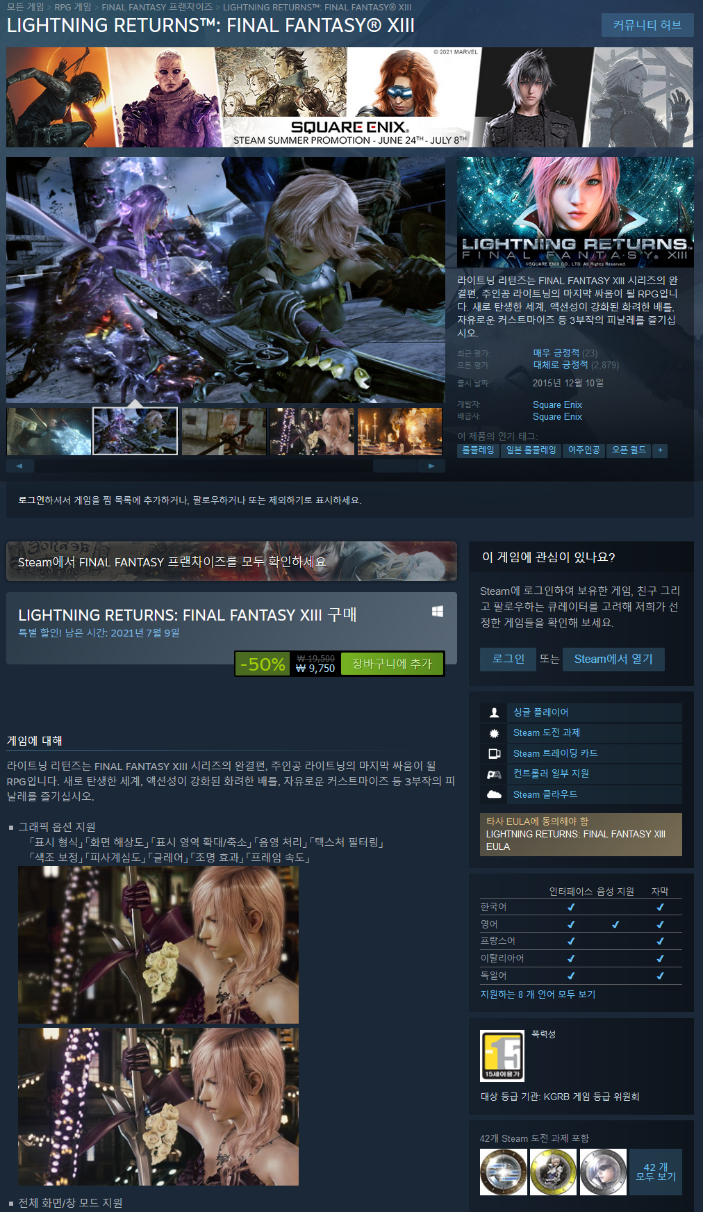 - 본 게임은 오리지널 버전 LIGHTNING RETURNS FINAL FANTASY XIII에서 스토리가 추가되거나 변경되지 않았습니다.