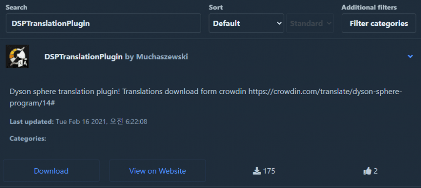여기서 Online 탭을 누르고, 검색창에 DSPTranslationPlugin을 검색하면 번역모드가 나옴