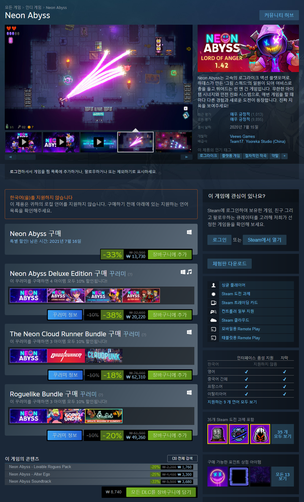 - https://gall.dcinside.com/mgallery/board/lists/?id=neonabyss //Neon Abyss 갤
