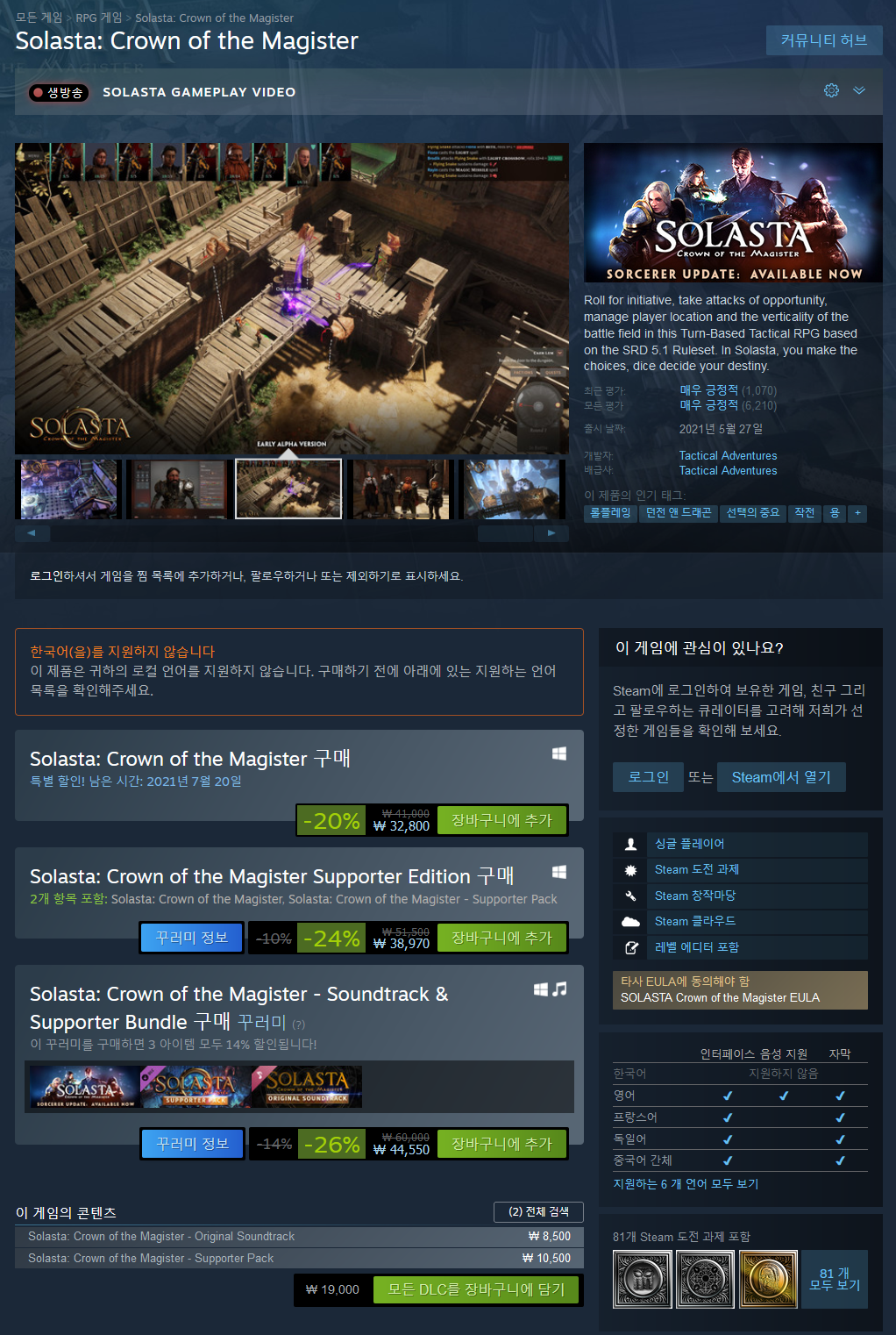 - https://namu.wiki/w/Solasta:%20Crown%20of%20the%20Magister //나무위키