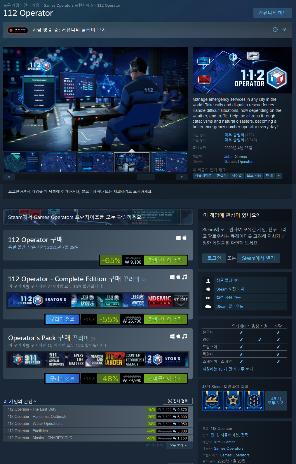 911 오퍼레이터도 재미있게 해서 112도 찜해뒀다가 샀음