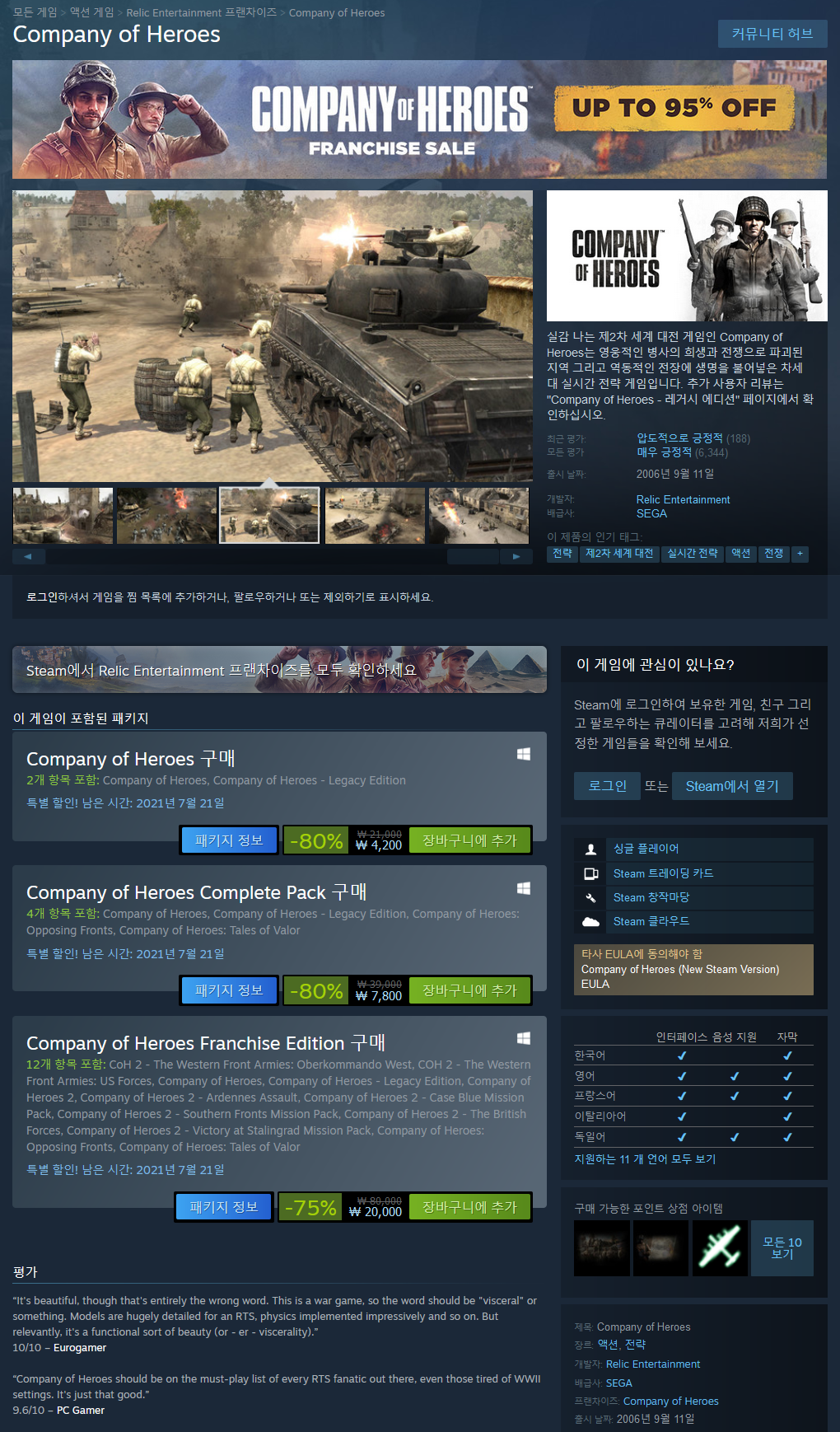 추가 사용자 리뷰, "Company of Heroes - 레거시 에디션" 페이지를 방문하십시오. 레거시 에디션 페이지에는 Steam에서 이용 가능한 COH1의 모든 변환 내용도 확인할 수 있습니다.