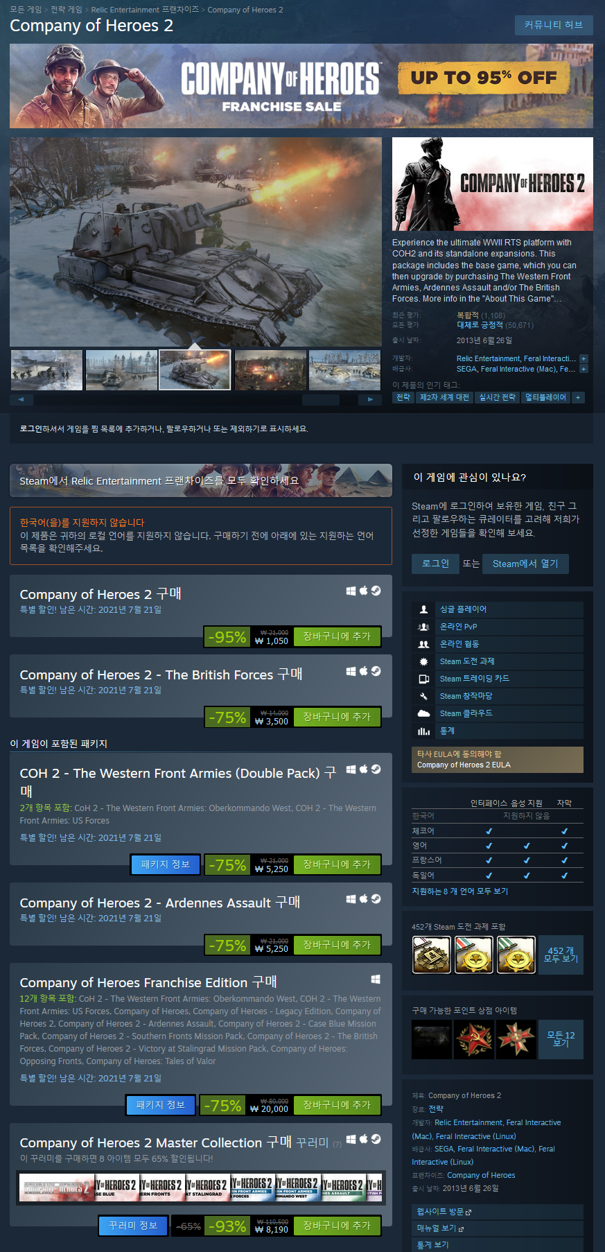 | 컴퍼니 오브 히어로즈 3, Company of Heroes 3 소개(Introduce),리뷰(Review),할인(Sale) 관련 (0) | 2021.07.19 |
