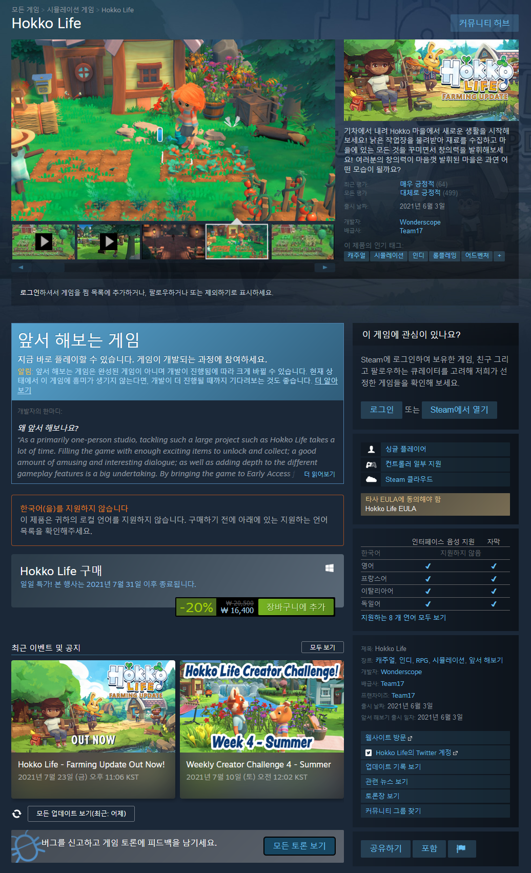 가성비 괜찮은 게임입니다. 동숲과 비슷하고 동숲은 닌텐도랑 동숲까지 구입해야하니 금액이 부담되시는 분들은