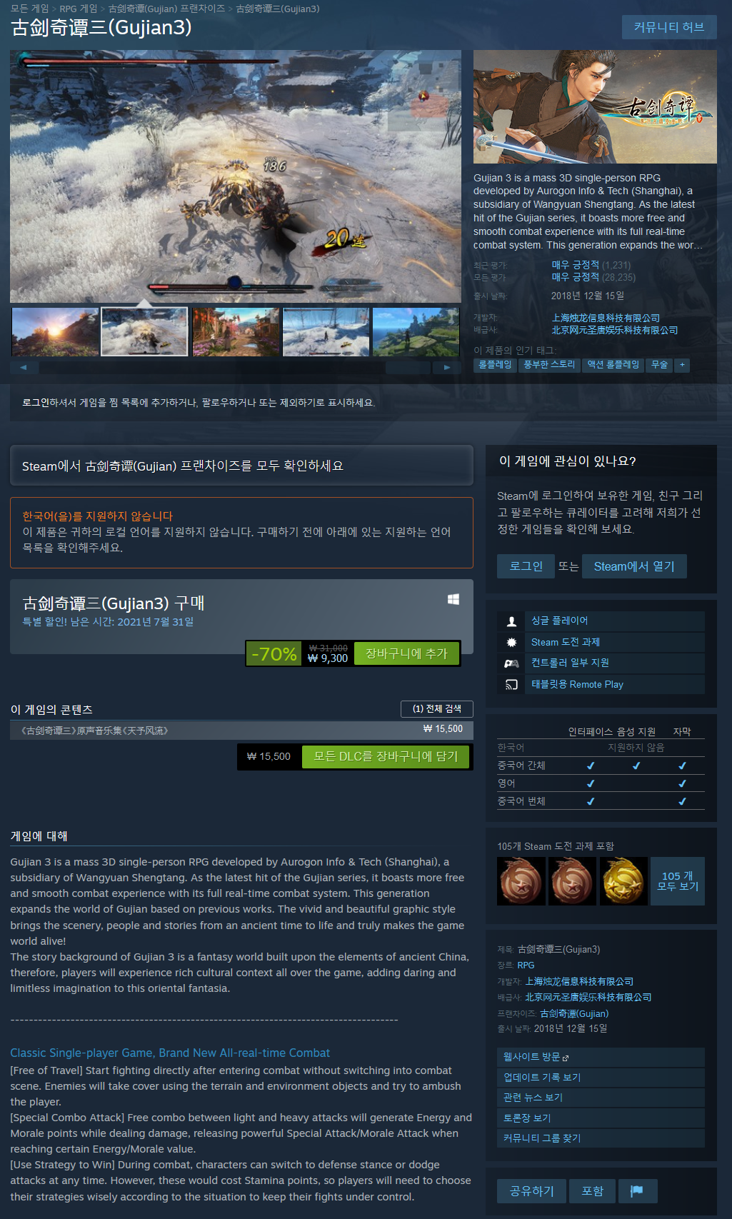 Gujian 3는 Wangyuan Shengtang의 자회사인 Aurogon Info & Tech(Shanghai)에서 개발한 대규모 3D 1인칭 RPG입니다. 구지안 시리즈의 최신작으로 풀 실시간 전투 시스템으로 더욱 자유롭고 부드러운 전투 경험을 자랑합니다. 이번 세대는 전작을 바탕으로 구젠의 세계를 확장한다. 생생하고 아름다운 그래픽 스타일은 고대의 풍경, 사람 및 이야기를 생생하게 가져와 게임 세계를 진정으로 생생하게 만듭니다!