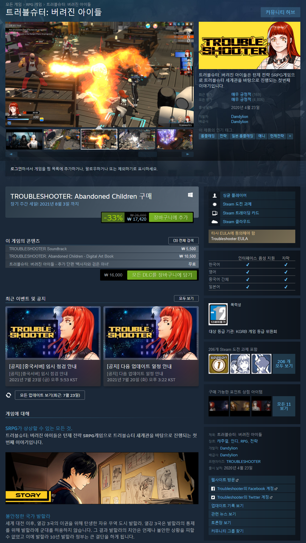 트러블슈터: 버려진 아이들은 턴제 전략 SRPG게임으로 트러블슈터 세계관을 바탕으로 진행되는 첫번째 이야기입니다.