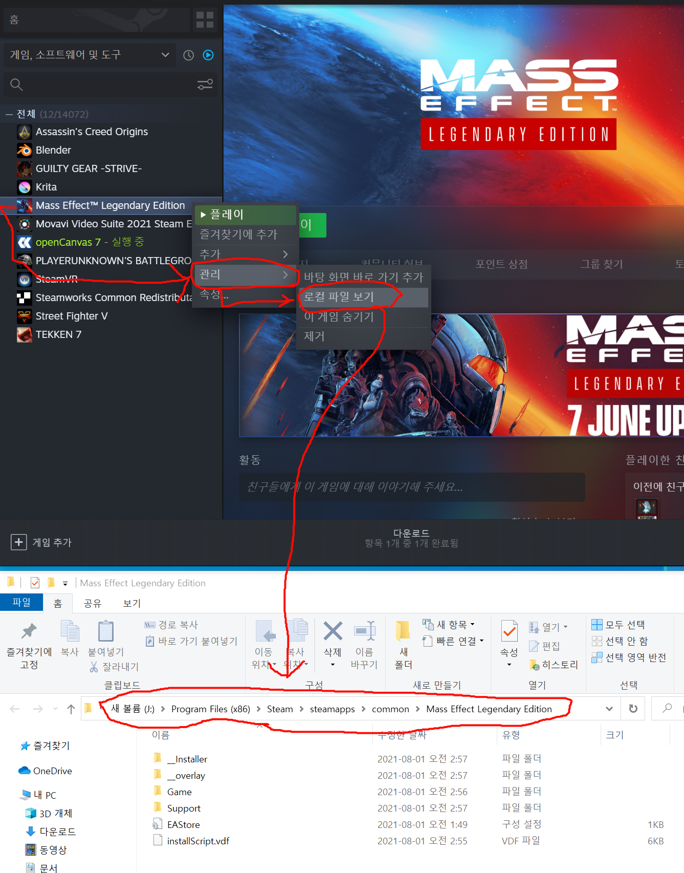 압축 푸신 후에 폴더 내부의 파일들을 매스이펙트 설치 경로에 덮어쓰기 하시면 됩니다.
