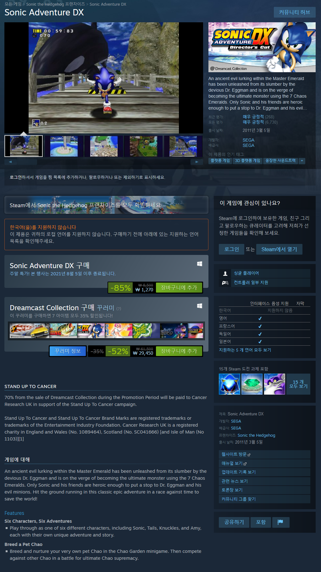 말하자면 추억을 되새기기 위해 스팀판 SADX를 구매했던것이고, 성공했다.