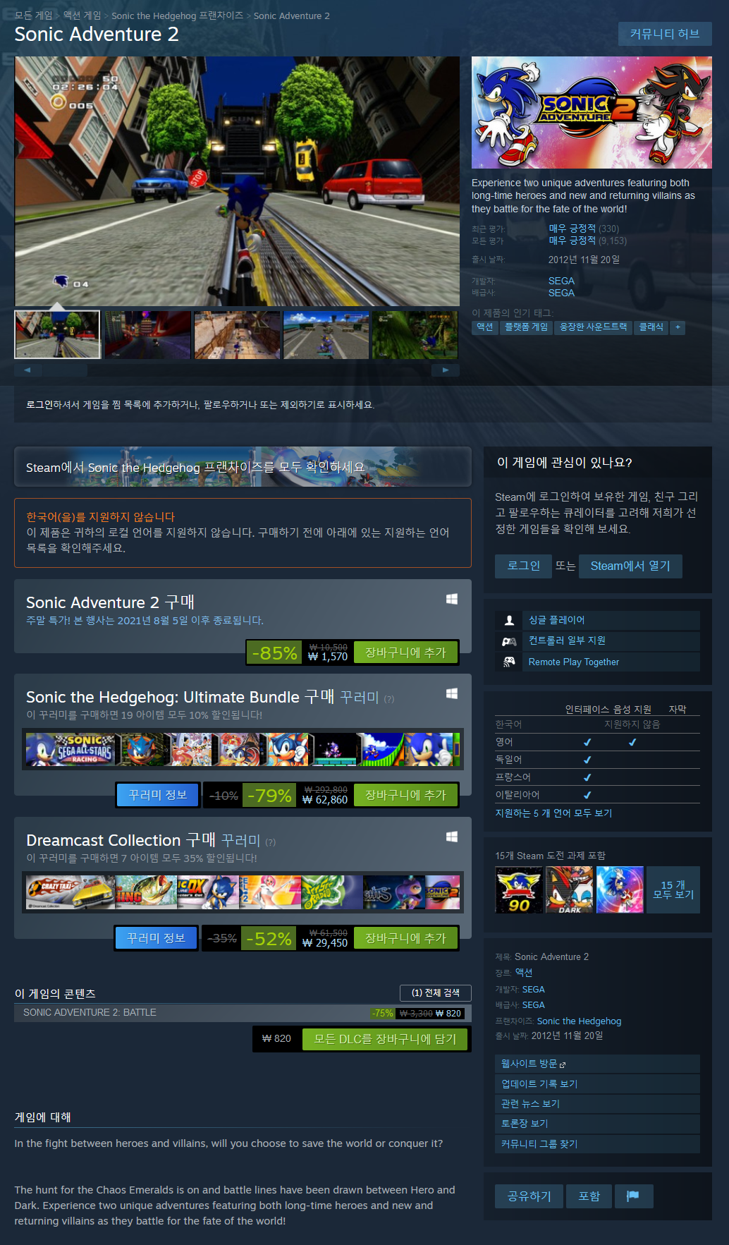 | 소닉 어드벤처, Sonic Adventure DX 소개(Introduce),리뷰(Review),할인(Sale) 관련 (0) | 2021.08.02 |