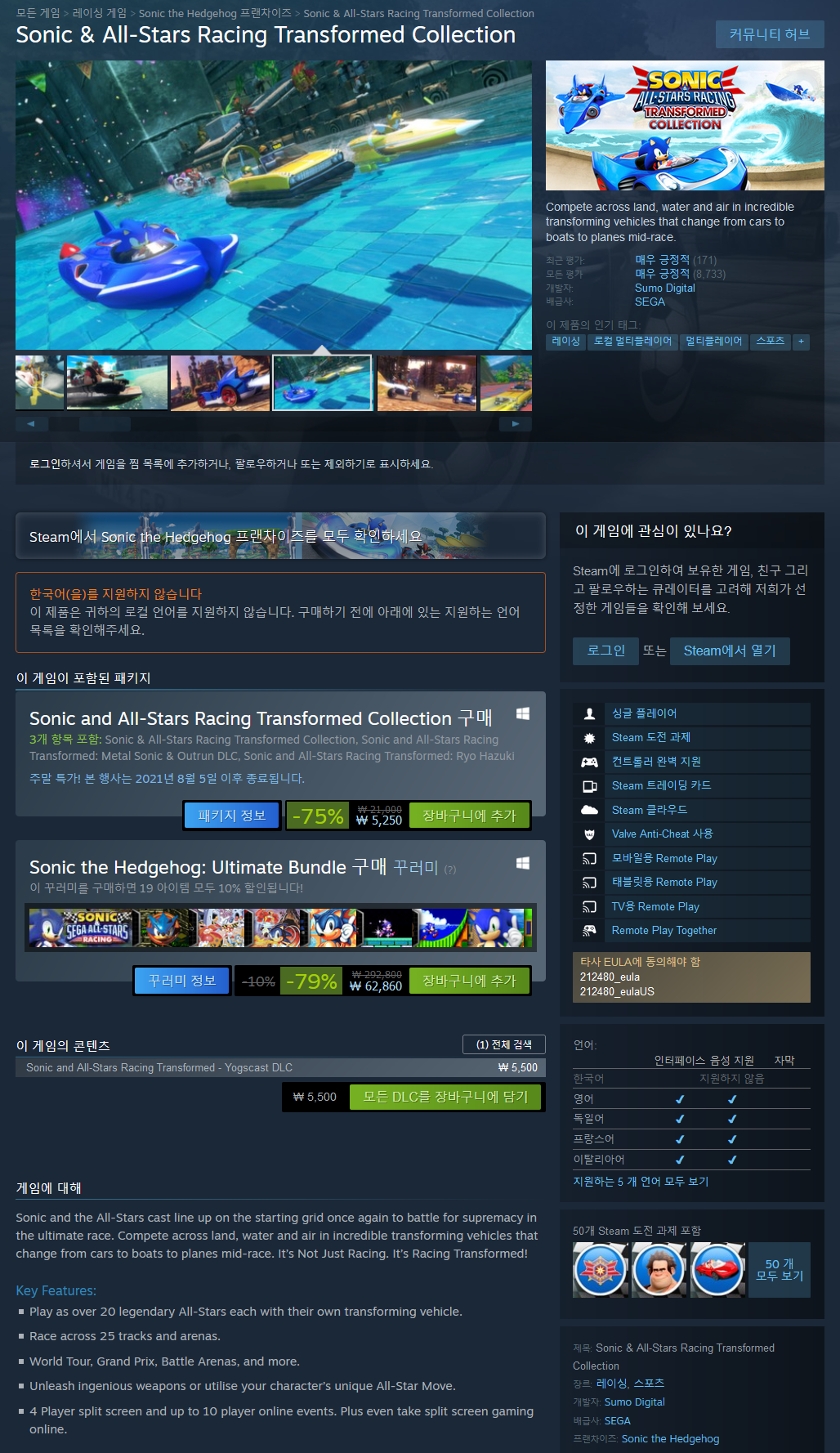 | 팀 소닉 레이싱, Team Sonic Racing™ 소개(Introduce),리뷰(Review),할인(Sale) 관련 (0) | 2021.08.02 |