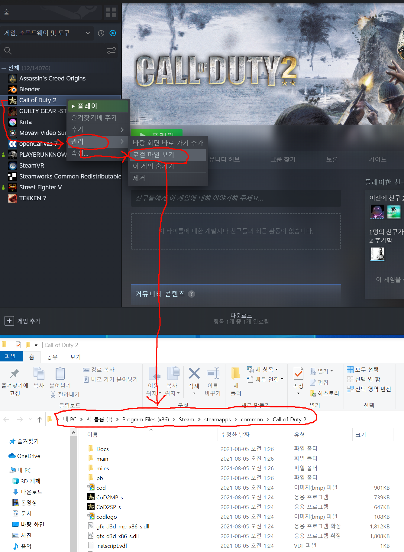 1. 콜 오브 듀티 2 게임 파일에 들어갑니다
