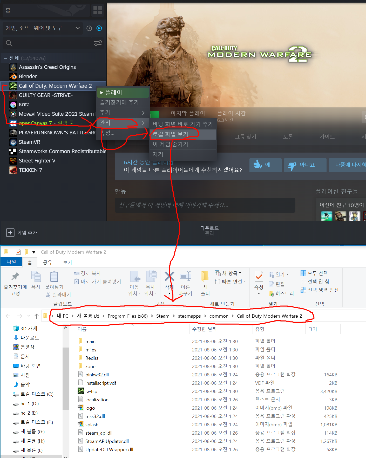 모두 스팀의 Call of Duty Modern Warfare 2 게임 폴더로 복사한다.