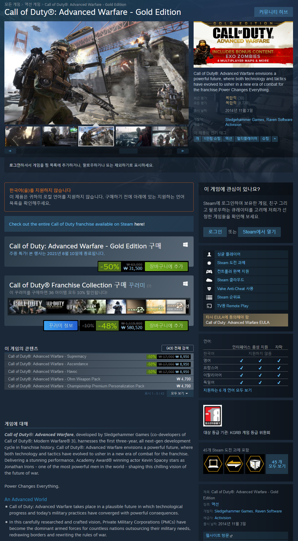 - https://store.steampowered.com/developer/callofduty //프렌차이즈 링크