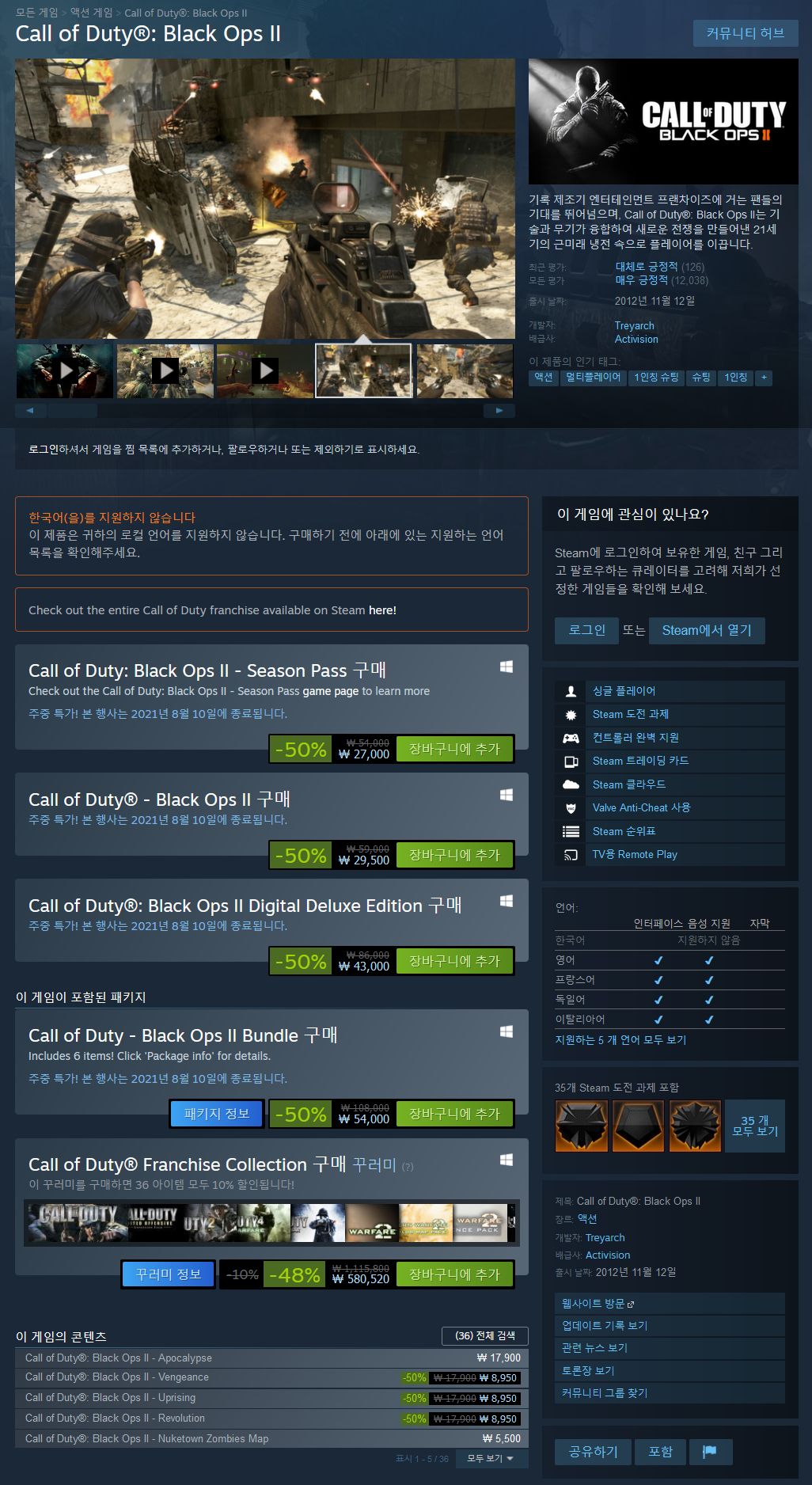 - https://store.steampowered.com/developer/callofduty //프렌차이즈 링크