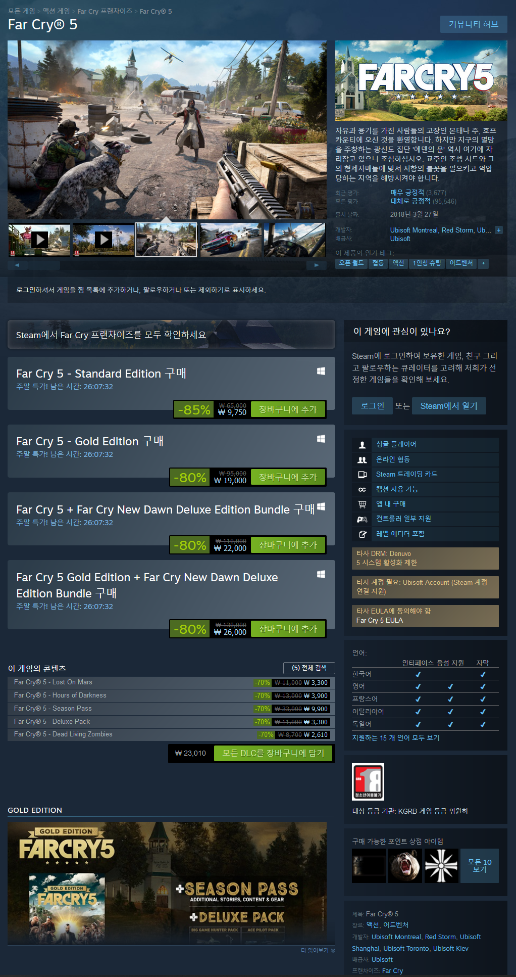 - Far Cry 5 Gold Edition + Far Cry New Dawn Deluxe Edition Bundle (26,000원 최저가)