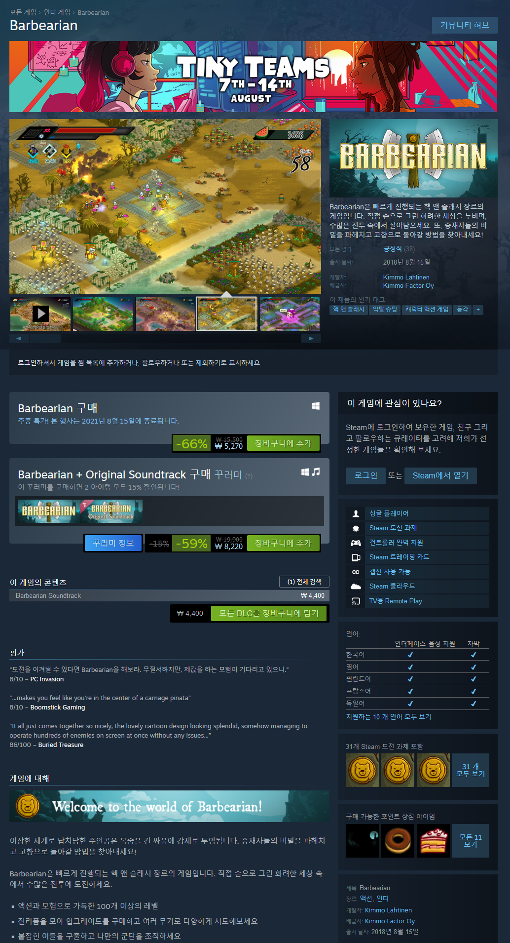 Barbearian is a fast-paced hack'n'slash with massive battles in a colorful, hand-drawn world.