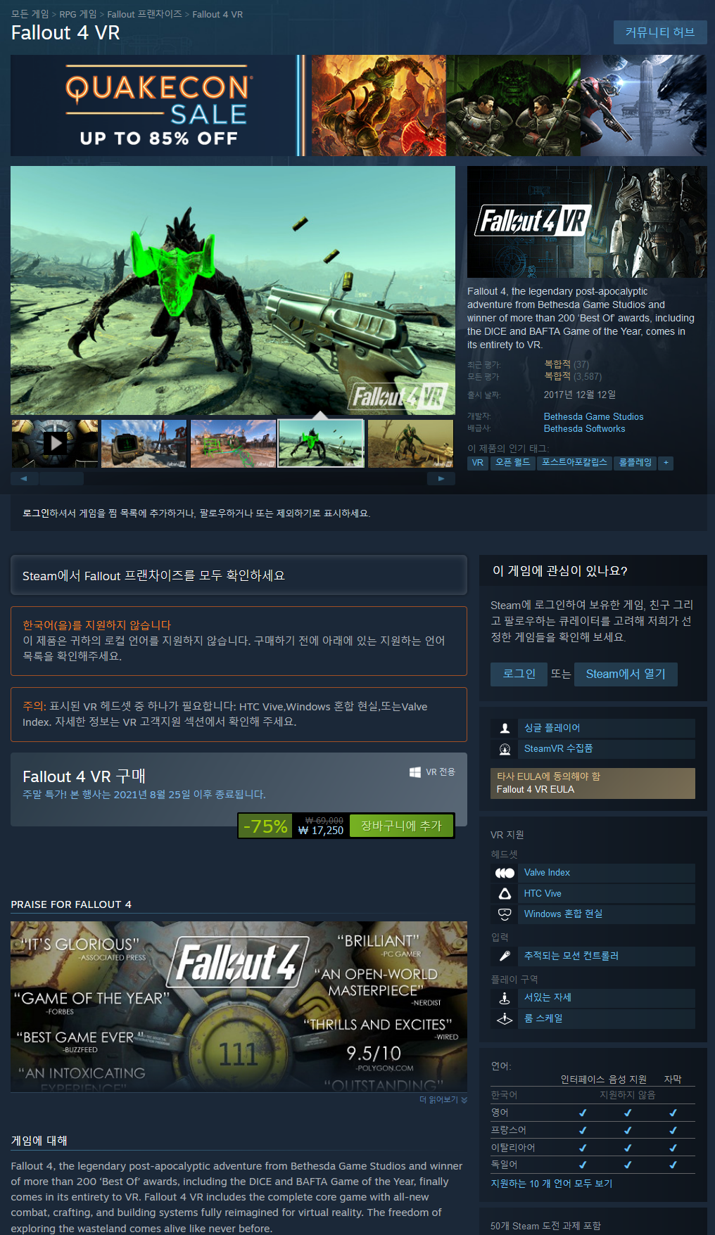 - https://store.steampowered.com/app/611660/ //폴아웃4 VR